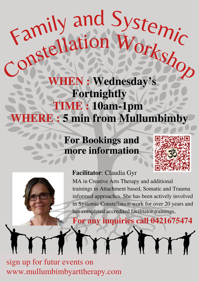 Art Therapy and Systemic, Family Constellation work create a powerful, experiential combination to address individual and trans-generational issues in one on one sessions and group work.